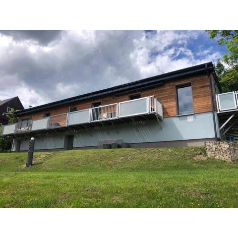 Obiekt SKY one & two, położony w miejscowości Smržovka, oferuje bezpłatne WiFi, ogród z tarasem oraz dostęp do wanny spa. Odległość ważnych miejsc od obiektu: Góra Ještěd – 28 km, Wodospad Szklarki – 31 km.